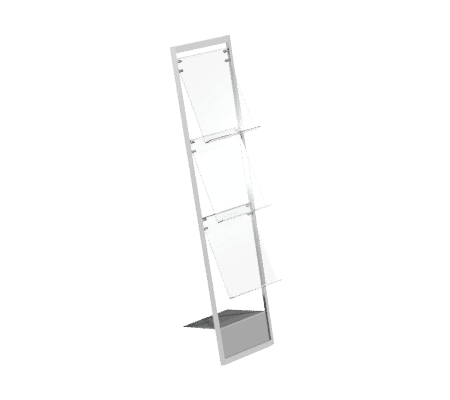 Présentoir à documentations Octanorm: Embase époxy gris, structure aluminium anodisé avec 3 bacs transparents en altuglas