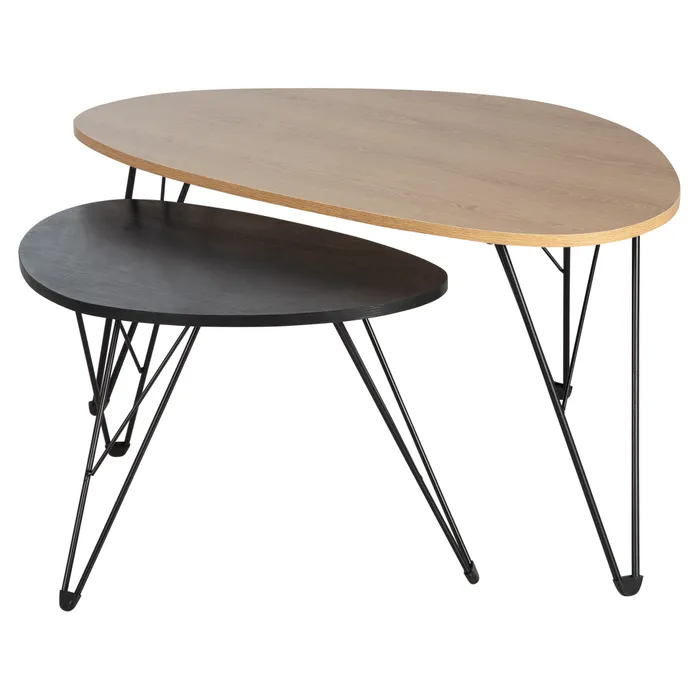 Table basse gigogne avec plateaux bois et noir, pieds « épingles » en acier noir. Cette table s’intègre parfaitement dans les petits espaces, offrant à la fois style et fonctionnalité. Avec ses dimensions compactes, cette table basse est parfaite pour les salons de taille réduite ou les coins lecture cosy. Avec son design épuré et contemporain, la table PINS 2 se remarque et donne du « chic » à votre espace salon.