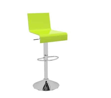 Tabouret sur piston, hauteur réglable. Pied chromé avec assise bois de couleur.