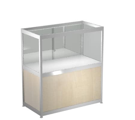 Vitrine comptoir en structure aluminium et panneaux bois – Eclairage par tube led – Portes coulissantes fermant à clef. Plusieurs coloris disponibles