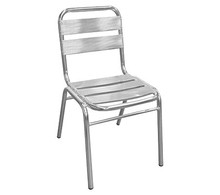 Silver aluminum chair. Lightweight, stackable chair.