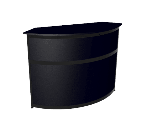 Curved 1/4 circle counter with interior shelf and lockable sliding doors.