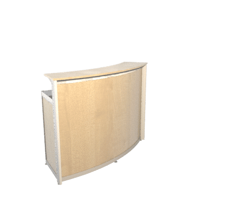 Curved bar counter, 1/8 circle, in aluminum frame and infill panels. Interior shelf. Several colors available. Possibility of customizing the counter front.
