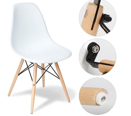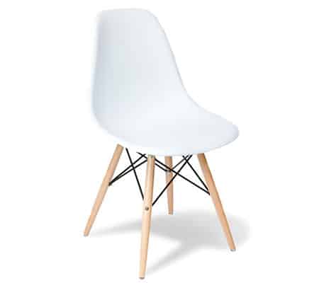 Scandinavian-style chair with wooden legs and polypropylene shell