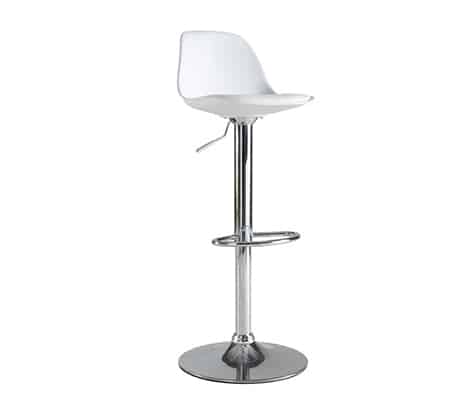 Bar stool on piston, adjustable, chrome-plated foot, plastic shell, leatherette seat